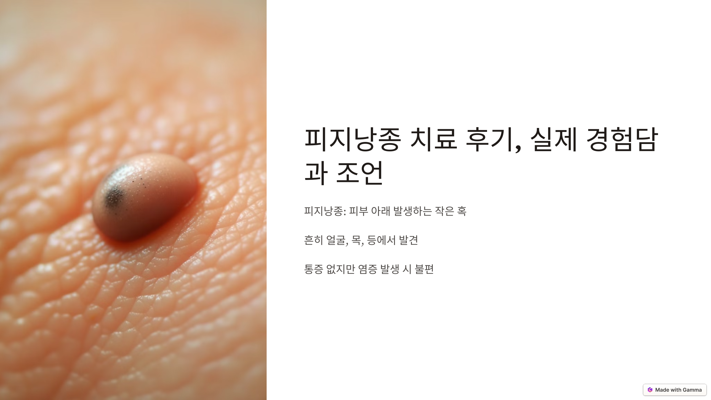 피지낭종은 피부 아래에 발생하는 작은 혹으로, 흔히 얼굴, 목, 등과 같은 피지선이 발달한 부위에서 발견됩니다. 많은 분들이 이 증상을 겪고 있지만, 정확한 정보를 얻기 어려워 혼란스러워하기도 하죠. 오늘은 제가 경험한 피지낭종 치료 과정을 생생히 공유하며, 여러분이 이 문제를 해결하는 데 도움이 될 팁과 정보를 제공해 드리겠습니다.