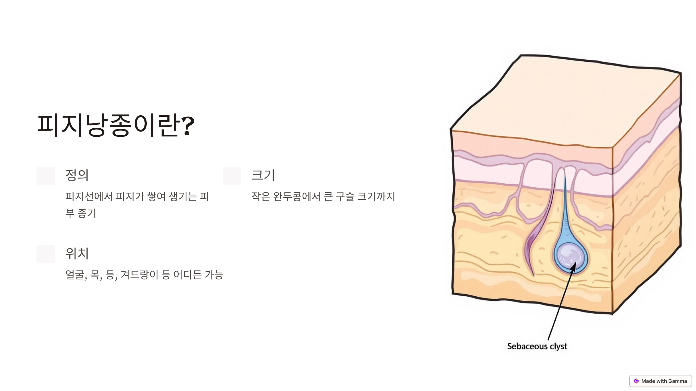 피지낭종은 피부 아래에 생긴 작고 단단한 덩어리로, 많은 사람들이 경험하는 흔한 피부 문제 중 하나입니다. 이 글에서는 병원에서의 피지낭종 제거 과정과 함께, 관련된 궁금증을 속 시원히 해결해 드릴게요. 😌 특히, 피지낭종 제거를 고민하시는 분들에게 도움이 될 수 있는 정보를 체계적으로 알려드리겠습니다.