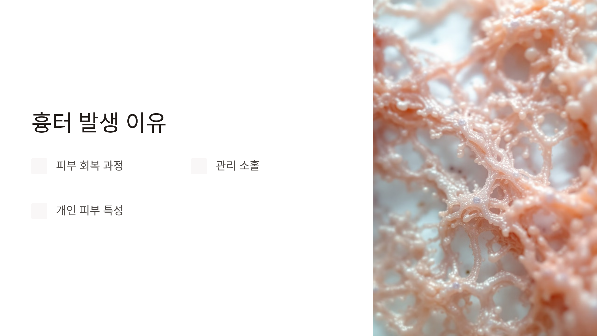 - 개인 피부 특성: 유전적으로 흉터가 잘 생기는 피부