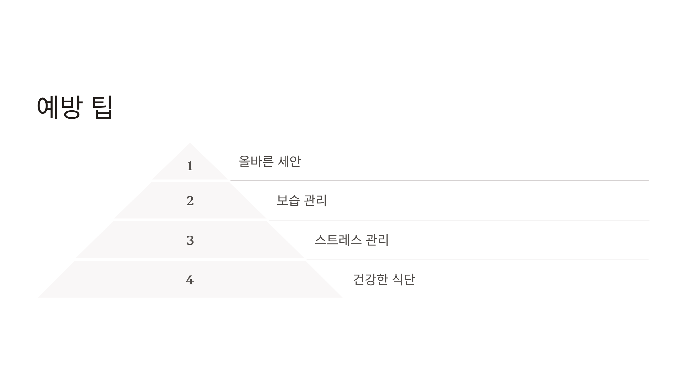 - 건강한 식단: 기름진 음식과 설탕 섭취를 줄이고, 비타민이 풍부한 채소와 과일을 섭취하세요.