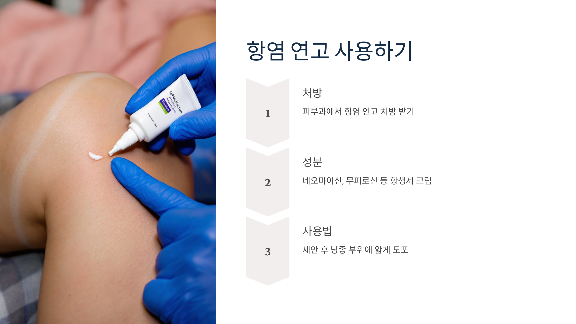 • 추천 성분: 항생제 크림(네오마이신, 무피로신 등)