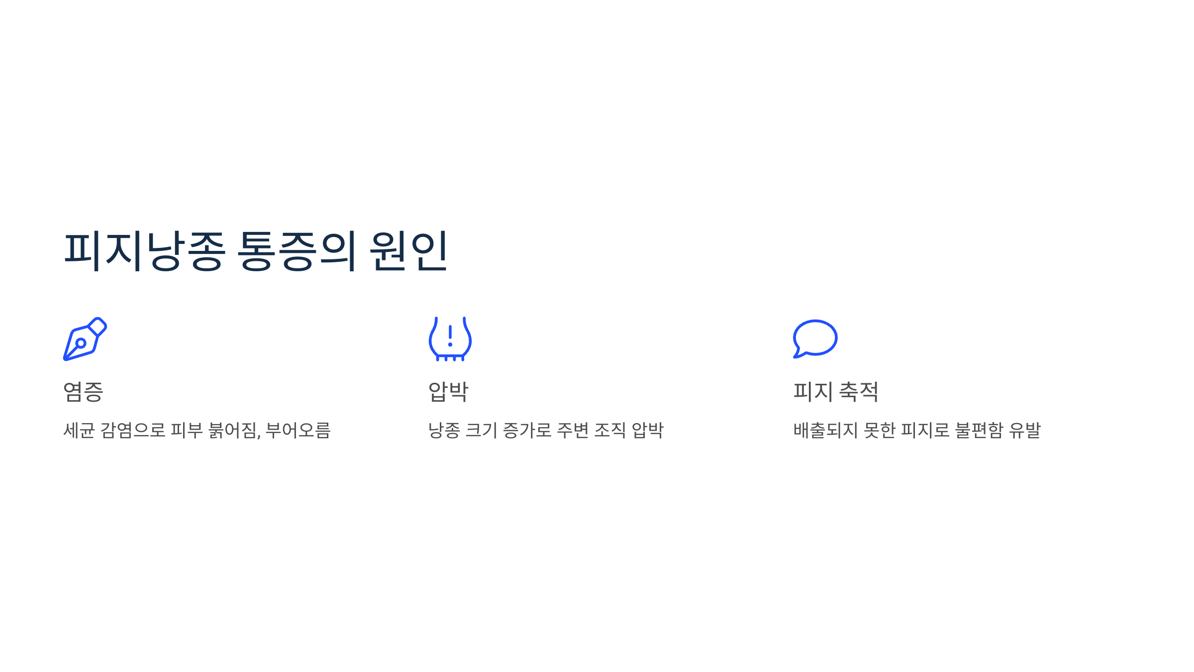 • 압박: 낭종이 커지면서 주변 조직을 압박해 통증을 유발합니다.