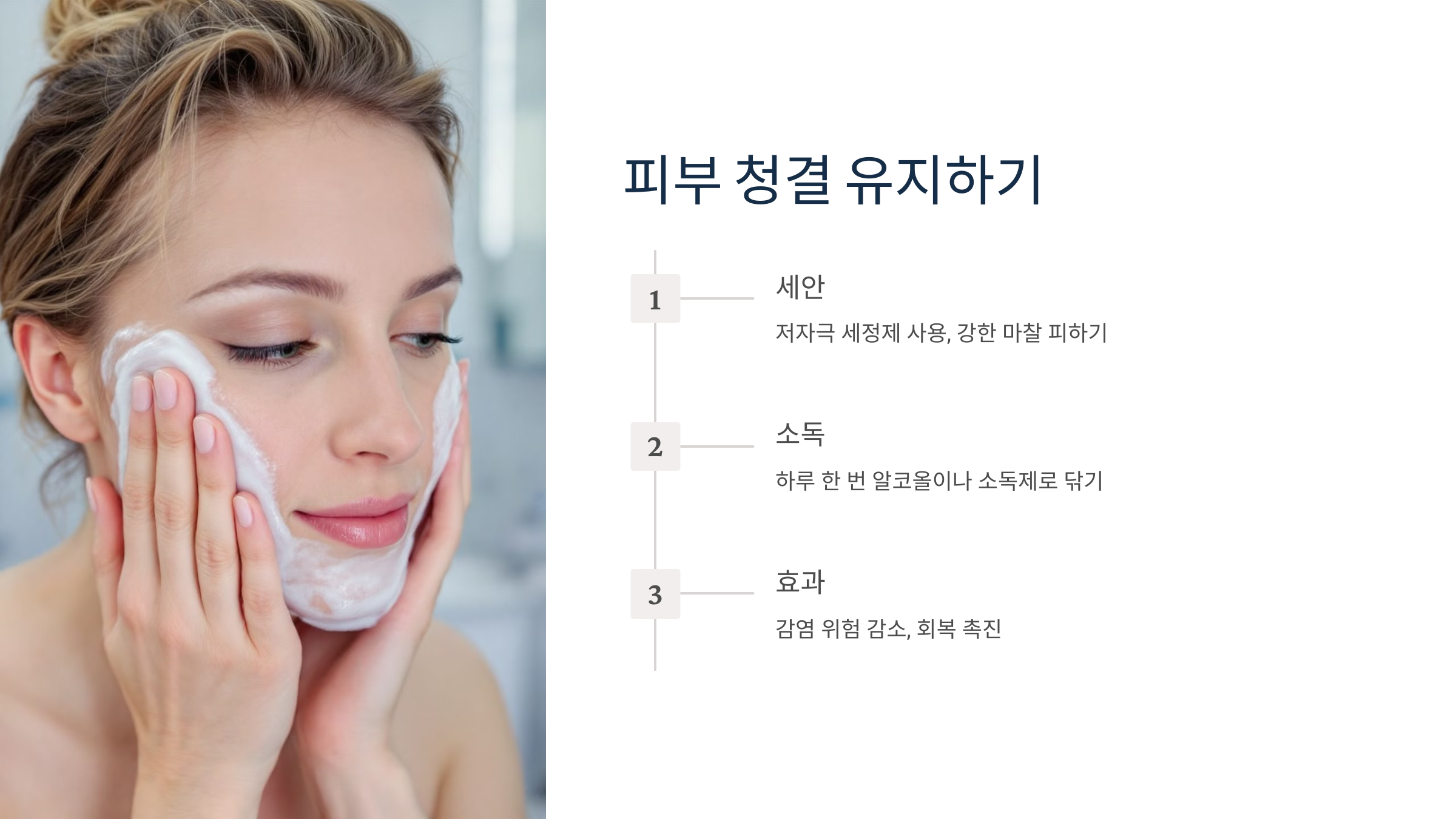 • 세안 팁: 저자극 세정제를 사용하고, 강한 마찰은 피하세요.