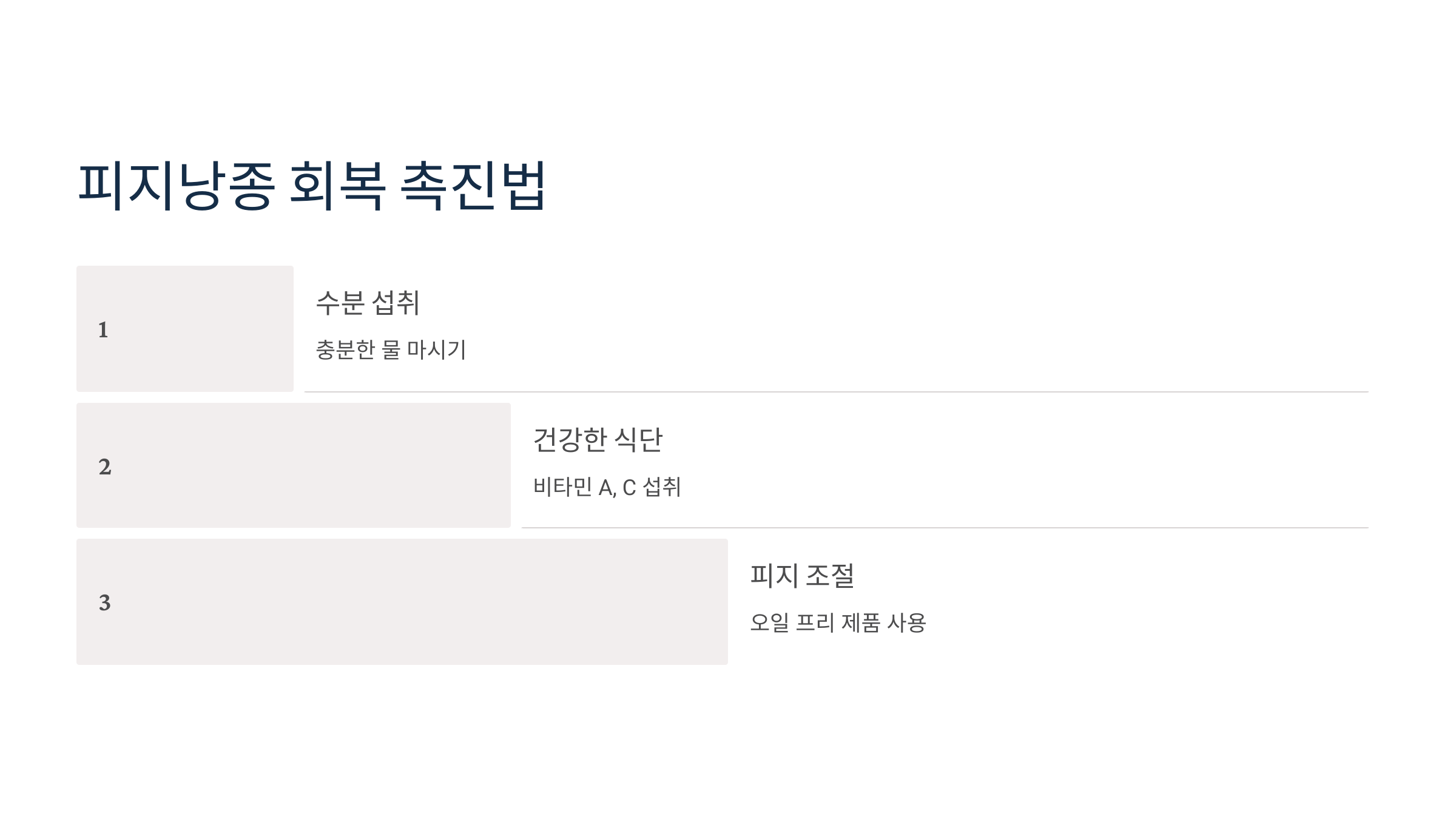• 수분 섭취: 충분한 물을 마셔 피부 회복을 돕습니다.