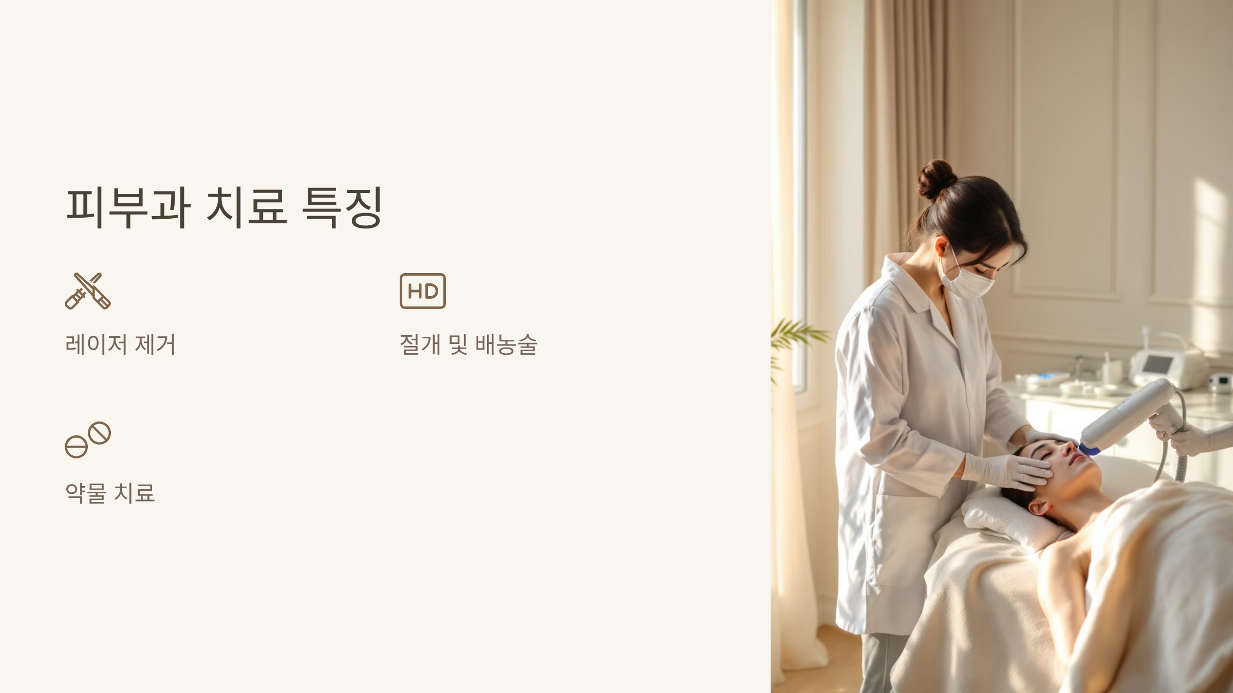 피부과는 주로 간단한 시술과 빠른 치료를 제공합니다.