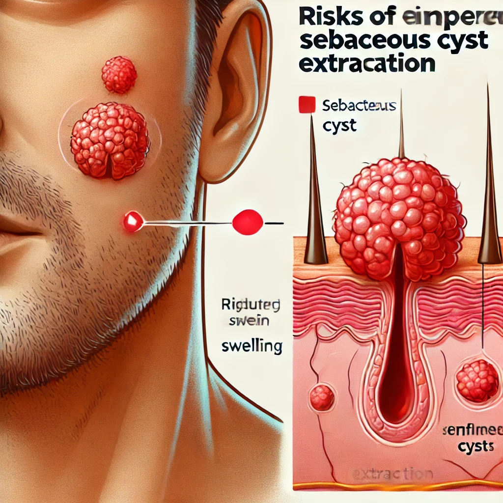 피지낭종을 잘못 압출하면 감염, 흉터, 재발 위험이 있습니다. 특히 손으로 무리하게 짜면 피부 조직 손상이 발생할 수 있으며, 세균이 유입되어 염증이 심해질 수 있습니다. 따라서 압출은 신중히 접근해야 합니다.