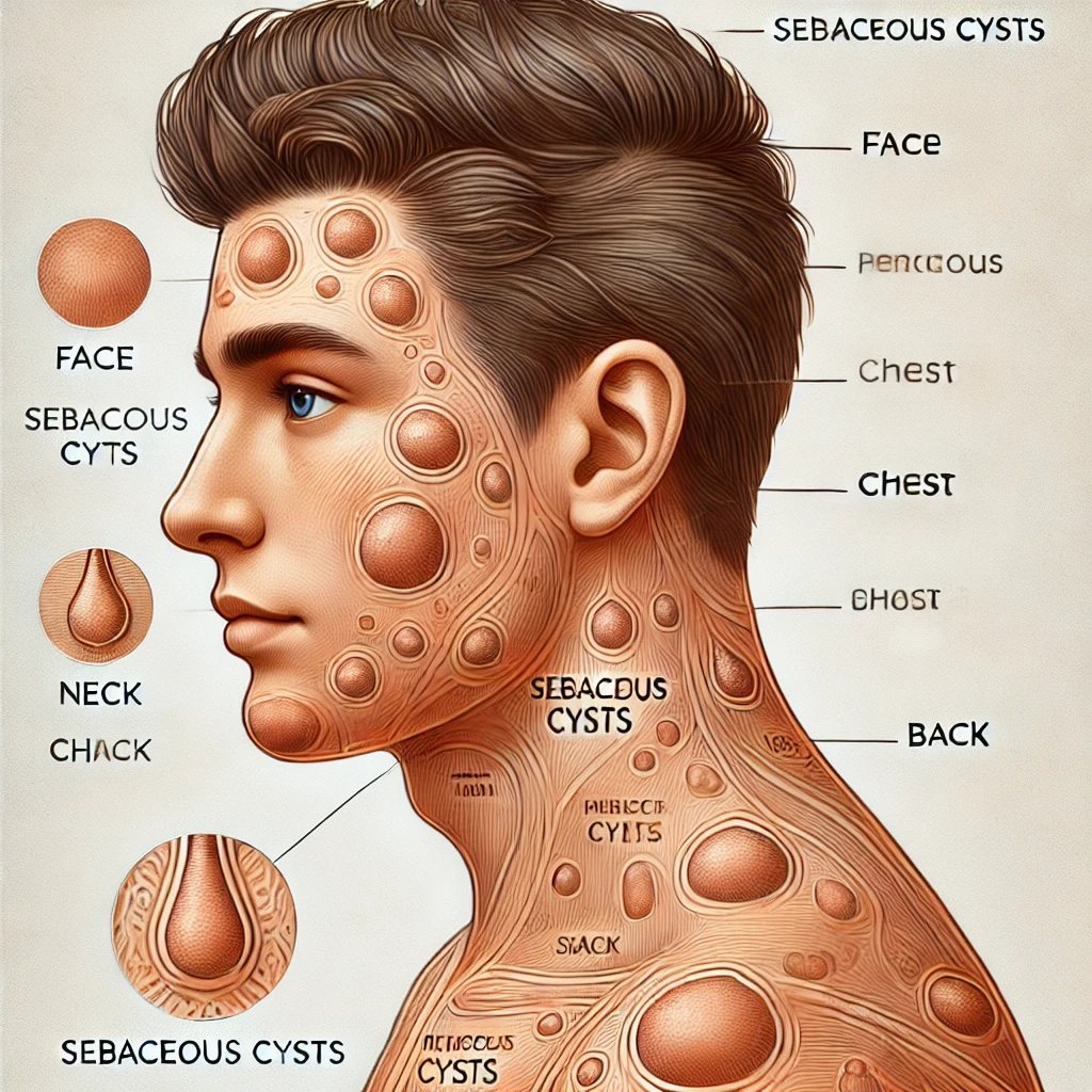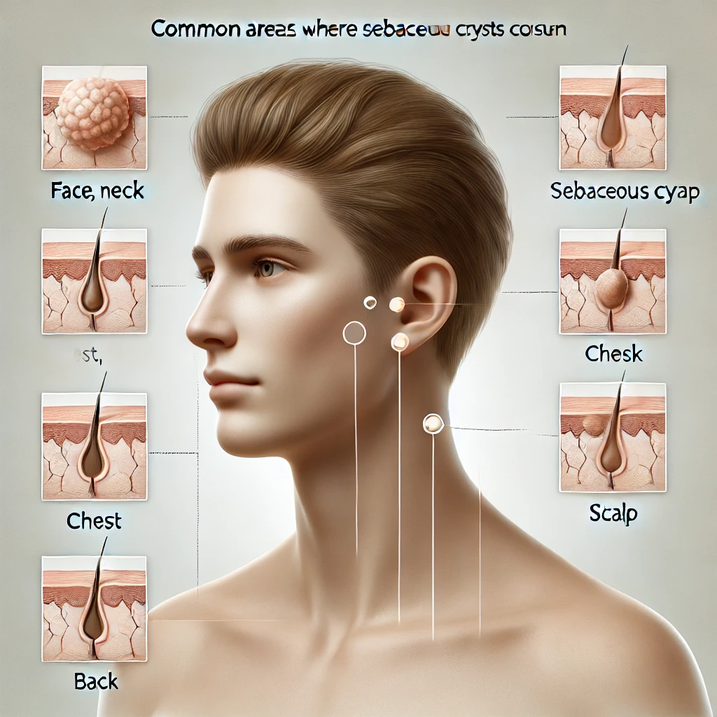 • 얼굴: 특히 이마, 코 주변, 턱 부위는 피지선이 발달하여 낭종이 자주 생깁니다.