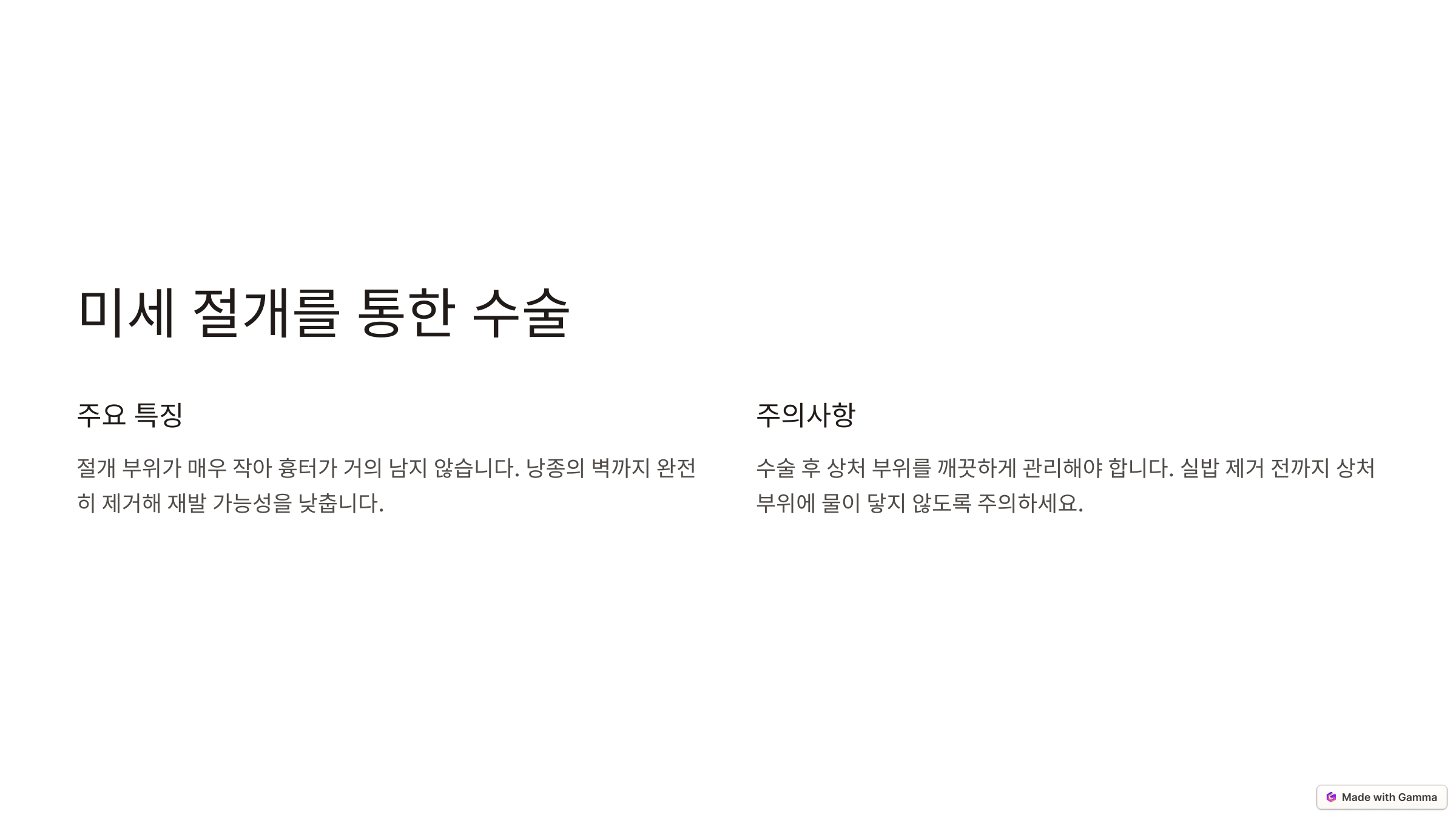 - 전문적인 장비와 기술로 흉터를 최소화합니다.
